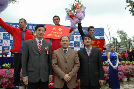 上午8时20分,男子20公里竞走比赛首先拉开帷幕。整个比赛过程可谓是悬念迭起,扣人心弦。选手们的奋力角逐,挥汗如雨,引来了大批观众的呐喊助威。最后,扬州选手李高波脱颖而出,一举夺魁,以1小时18分17秒获得男子20公里比赛的冠军。在一派欢欣中,新能源虎豹公司顾总等人为获奖的男运动员颁发了奖杯并给予祝贺。时后,女子20公里竞走中国选手何丹以1小时28分20秒获得冠军。至此, 奥都花城;杯2006国际田联竞走挑战赛在扬城完美落幕。
