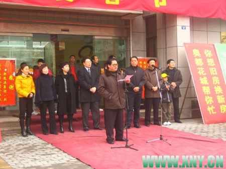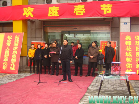 正月初二上午9:30,奥都花城置换业务开办仪式在售楼中心隆重举行,集团公司领导参加并发表讲话。