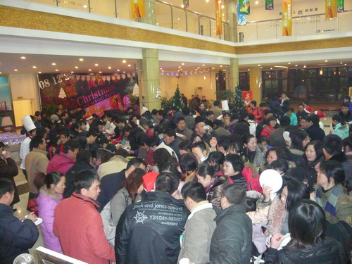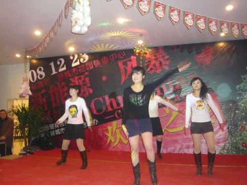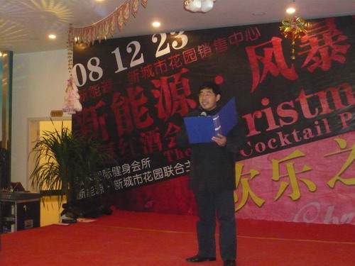12月23日,尽管是数九严寒滴水成冻的冬日,但在新能源新城市花园售楼中心大厅却呈现一派喜庆和春意。晚5时30分,兴高采烈的人们从四面八方涌向新能源。晚6时由新能源、风暴健身会所联办的2008放舞狂欢大型高档圣诞大餐酒会正在这里举行。