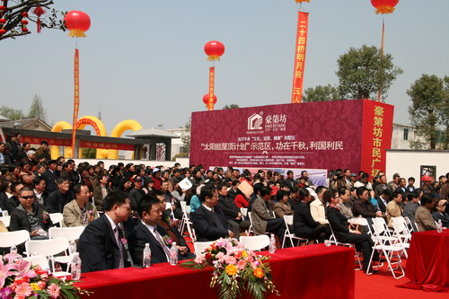 豪第坊项目是由扬州新能源虎豹房屋开发有限公司投资建设,项目位于扬州西郊新集镇,占地近500亩,是一个由独栋、联排、叠加、情景洋房、沿河观景洋房等多种建筑形态组成的现代中式高品位大型文化休闲居住区。小区提炼了扬州中式园林特色、皖南村落特色、现代主义建筑风格,并把扬州的汉文化、盐商文化和劳动文化进行提取和糅合,深度诠释骨子里的扬州;这一开发理念。项目文化气息浓郁、园林设计特色鲜明、建筑形态与风格独具匠心,在户型上首度演绎内庭院;概念,拥有独特的水系景观、拥有五星级服务的养生会馆、休闲娱乐、购物、健康和运动等配套。据介绍,豪第坊项目在扬州开创了多项第一;,如采用了太阳能屋顶计划示范的规模第一,且是首个在扬州推广木结构环保房屋的项目。
