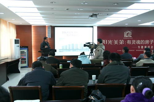 12月25日,阳光美第有灵魂的房子;专题研讨会隆重召开。来自江苏省建设厅、扬州大学房地产研究所等专家对住宅未来的发展趋势;、低碳经济、低碳住宅;等社会课题对参加会议的嘉宾、业主作了一一分析,并作重对什么是有灵魂的房子;、为什么建有灵魂的房子;、阳光美第的灵魂是什么;这一课题做了深入的解析。包广林董事长在发言中表示,低碳住宅就是低能耗、低污染、低排放;,阳光美第就是以此为基准,运用大量的高科技技术,为业主打造舒适安心的居住环境。他再次强调开发商要有社会责任感,要按照市委市政府提出的创新性社会、创新性经济;为契机和起点,一致努力,创造扬州更好的生活环境和居住条件。