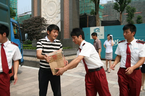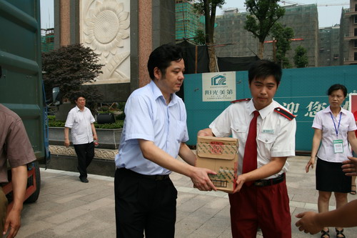 2010年7月5日上午,新能源虎豹公司总裁顾载兵和集团公司总裁助理冯卫琴等领导冒着酷暑来到栖月苑、阳光美第、豪第坊、新城市花园等小区看望工作在一线的保安、保洁等岗位上职工。在炎炎的夏日里给他们送去了冷饮。 总裁顾载兵对站岗的保安说:新能源;的品牌上有你们的汗水和辛劳。我代表公司谢谢你们,你们辛苦了。保安队长张辉说:领导送来的不仅仅是冷饮,更是给我们心里送来了夏日里丝丝凉意,让我们感受到新能源大家庭的温暖。