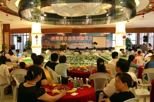 江苏新能源置业集团董事长包广林在座谈会上说,豪第坊木结构别墅的板材及工艺均从加拿大全套引进,目前首期22套已全部销售,二期21套已开始预约,豪第坊木结构别墅以水景为特色的居住环境正向一流目标迈进,将再现扬州二十四桥盛景,真正让业主感到:船在水中游,人在画中走,成为扬州独创风格的小区。
