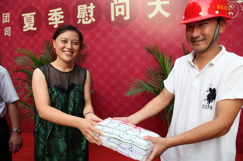 今年高温天气迟迟不退,对于奋斗在一线的工人,公司领导看在眼里、记在心中,花了近万元为建设工人购买了毛巾、香皂等防暑用品。