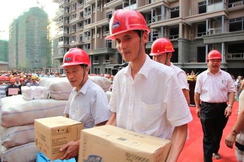 8月7日下午,阳光美第工地上锣鼓喧天,彩旗飘扬,新能源公司在这里隆重举行了夏季慰问大会。新能源集团董事长包广林、新能源虎豹公司顾载兵等公司领导出席了慰问大会。