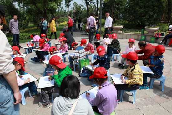 瘦西湖里有一个景区叫小李将军画本;,大意是指其景致如画,足堪描摹。而今天,名门壹品和揽月公园也成了孩子们的画本;。在揽月公园绿树浓阴之间,孩子们支起画架,拿起画笔,把他们看到的、理解的、想象的一笔一笔勾勒出来,那一份专注让每一位在场的人们都感到由衷的喜悦。