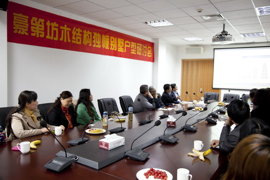 4月12日,20多位准业主齐聚豪第坊,与设计专家和建设方老总共同研讨第三期木结构独栋别墅的户型升级。 木结构独栋别墅是新能源虎豹公司新一代的创新住宅产品,率先在豪第坊大面积开发建设。木结构别墅由于低碳、环保、抗震、使用寿命长等特点,受到高端客户的青睐,第一、二期已全部售罄。 为优化户型结构,这次设计方、建设方和业主坐在一起,就客厅、卧室、厨房、卫生间的分布,商讨最佳方案,力求第三期木结构别墅户型更加完美。
