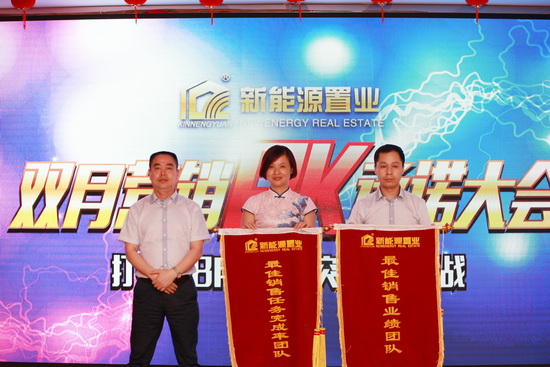 7月10日下午三时半,新能源豪第坊会所大厅热闹非凡,新能源双月PK活动在这里如期举行。双月PK是江苏新能源集团练好内功的一个表现形式,活动充分展示了新能源人的精神风貌和团队风采,公司各项目的每个员工个个都斗志昂扬,充分展示了大家的聪明才智,用不同的方式展示了团队的风采。 PK活动中,分别评选出了双月最佳销售业绩团队;、双月最佳销售任务完成率团队;、双月最佳全员销售业绩;个人前3名、双月最佳全员销售业绩;个人前3名。