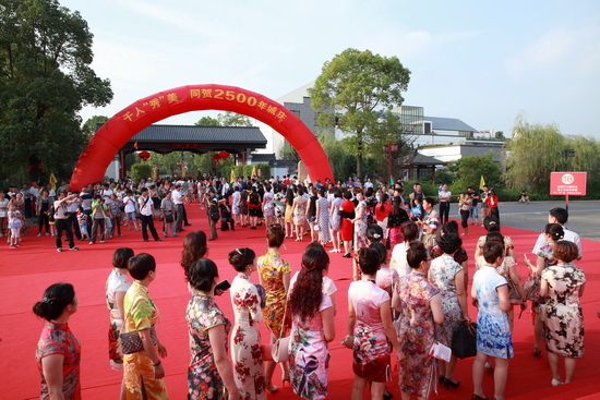 8月22日下午4点半,在豪第坊小区入口大道上,1100名来自扬州市区和各县市、南京、常州等地的美女,组成40余个方阵,身着各色旗袍,在红毯上款款而行,历时近50分钟,场面震撼。这就是扬州2500年城庆系列活动之千人秀;美贺城庆。