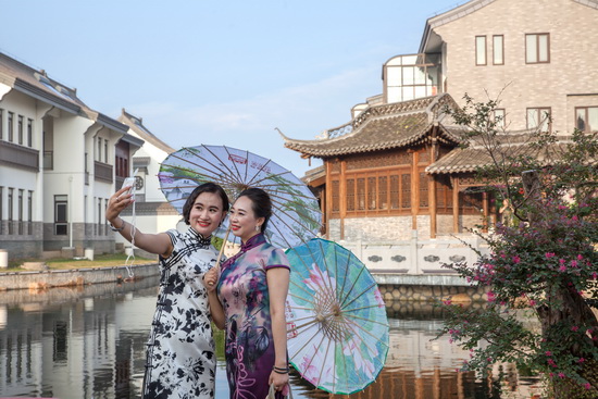 有着骨子里的扬州;美誉,由江苏新能源置业集团打造的豪第坊,成为本次盛会举办地的不二之选!这座占地480亩的小区,将扬州文化、苏式园林及徽派建筑的特点融为一体,以木结构独栋别墅和大庭院闻名,在扬州高档别墅区中独树一帜。小区规模宏大,五横三纵长达3公里的水系布满整个小区、水面上横卧以扬州二十四桥;为蓝本的24座形态材质各异的大小桥梁,绿意森森、繁花处处、水流蜿蜒、情趣盎然,宛如世外桃源。千百位身着旗袍、风姿各异的美女徜徉在这园林胜境之中,是怎样的一幅动人美景!