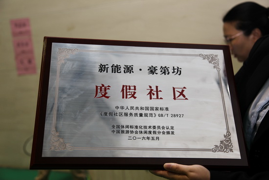 在庆祝新能源;成立20周年之际,国家度假社区;授牌仪式5月28日在新能源.豪第坊举行,国家相关部门及市旅游局、市体育局领导到场祝贺,新能源集团公司董事长包广林出席仪式并发表了热情洋溢的讲话。豪第坊这次成为国家度假社区;,是经全国休闲标准化技术委员会认定,由中国旅游协会休闲度假分会颁牌,是江苏省首个国家休闲度假社区。