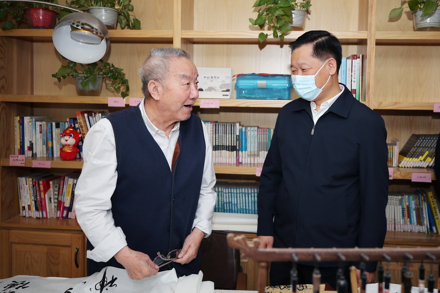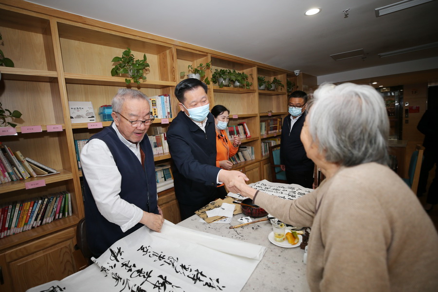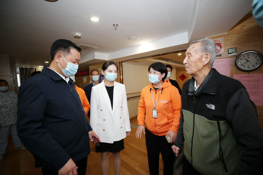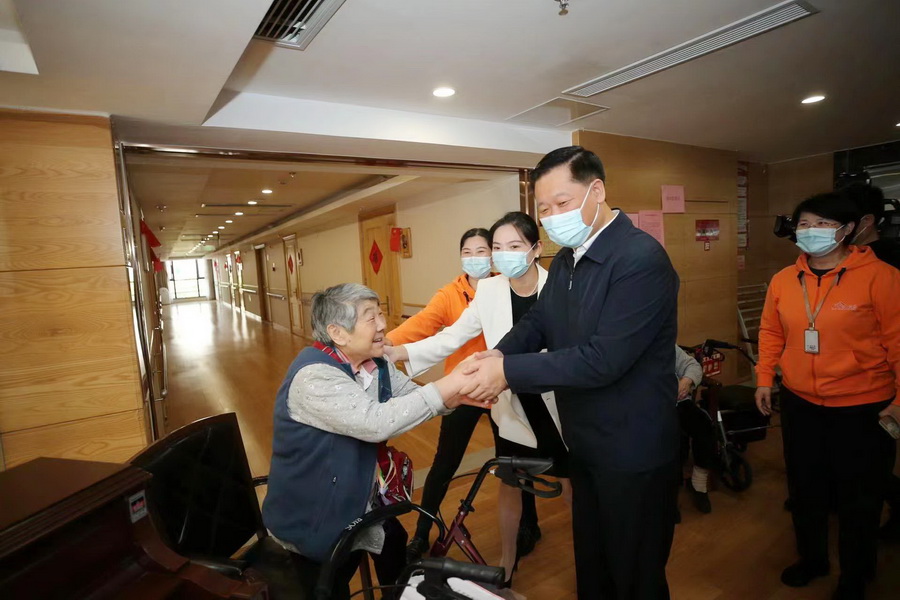 在南山公馆,潘国强实地查看食堂、宿舍区、活动区、医务室,详细了解养老机构服务保障情况,并与入住老人亲切交,祝福老人健康长寿。他要求要进一步完善养老服务设施,同步做好物质保障和精神慰藉,不断增强老年人的舒适度、幸福感。入住长者们对潘市长的关心与祝福表示感谢。他们说:在南山公馆生活非常安逸,南山公馆服务人员无微不至的关心、照顾,使他们安享晚年,幸福美满。