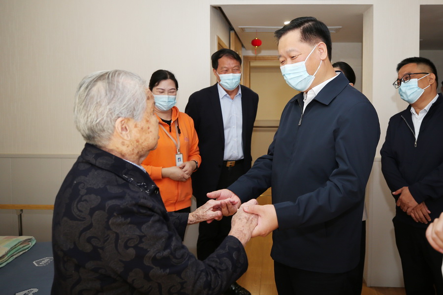 10月23日重阳节,是日上午,在江苏新能源置业集团董事长包广林陪同下,扬州市市长潘国强赴新能源·南山公馆,走访调研慰问长者,代表市委市政府向全市老年人致以节日问候和美好祝福。