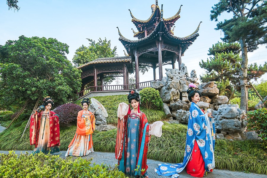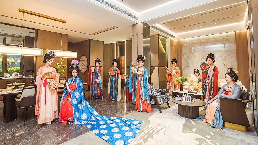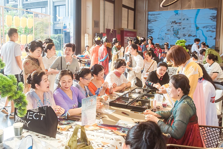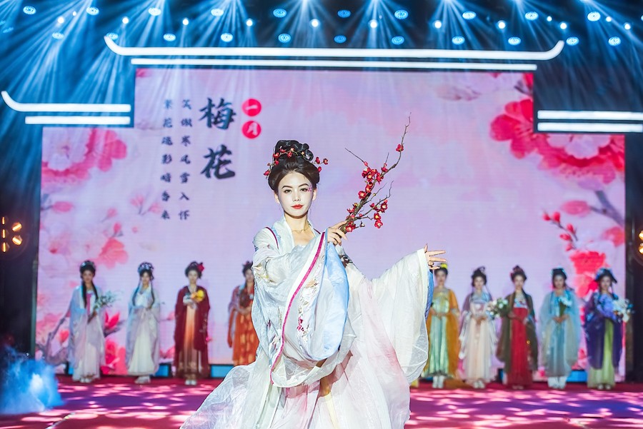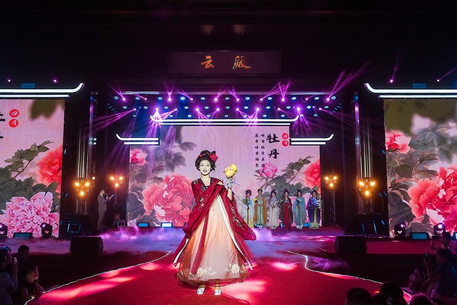 庆典现场,一场精彩的汉服秀、旗袍秀和朝代秀吸引了众多目光。《千年风雅 盛世衣冠》中,身着12花神、18式样唐朝服饰的佳人,在舞台上展示了旗袍的独特魅力。此外,孩子们也带来了《云殿国风美少年》,展现了中华民族文化的传承与发扬。