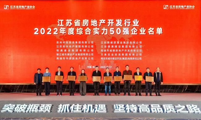 江苏省房地产开发行业2022年度综合实力50强企业日前揭晓,江苏新能源置业集团有限公司榜上有名,位列第16位。11月17日,江苏新能源置业集团有限公司总裁王秋云赴张家港市出席“2023江苏省房地产开发行业研讨会”,捧回了全省房企50强奖牌和证书。这次评选由江苏省房地产业协会主办,遵循公开、公平、公正的原则,按照排名办法和条件,对申报企业的...